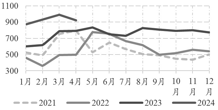 制造业方面,今年以来,地方债发行不及预期,项目资金较少且新开工项目不足,导致现实需求不断转弱。截至目前,地方政府新增专项债累计净融资进度仅为19%,去年同期为41.1%,一般债券累计净融资进度为31.5%,去年同期为45.4%。今年全国两会的目标中包括了3.9万亿元的地方政府专项债和1万亿元的超长期特别国债。如果财政总量兑现,后市下游资金到位情况将逐步好转。自4月开始,国家发改委再次要求加快债券发行和使用,且允许央行在二级市场中增加国债的买卖,这意味着短期特别国债的发行也将加速。此外,今年地方政府专项债的筛选也已经完成,各地也在提前做好项目的准备工作。债券的发行有利于下游资金改善,对基建项目形成有利支撑。